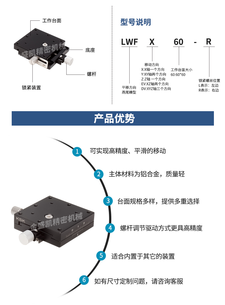 LWFX60X軸Z軸XY軸XZ軸XYZ軸手動(dòng)位移微調(diào)燕尾槽滑臺(tái)微型精密平臺(tái)