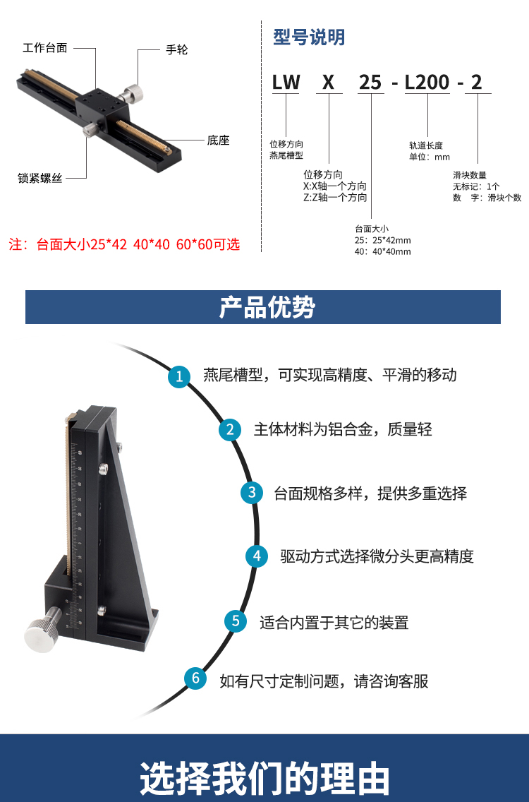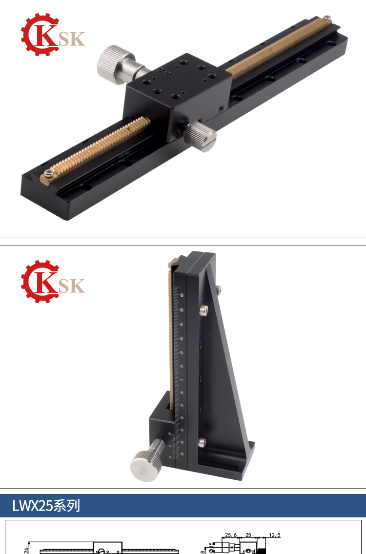 LWX25燕尾槽手動位移臺長行程齒輪齒條驅(qū)動XZLWG微調(diào)架平臺