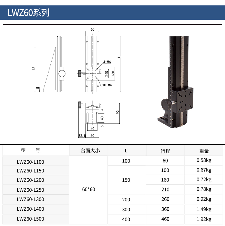 X軸Z軸長行程燕尾槽齒輪齒條滑臺LWX40L150手動精密位移微調(diào)架